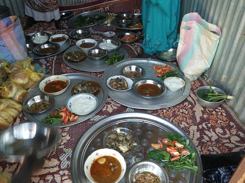 Normal practice: community members always eat together whether in house as a family or in groups with neighbors as it’s rare to find individuals eating alone.