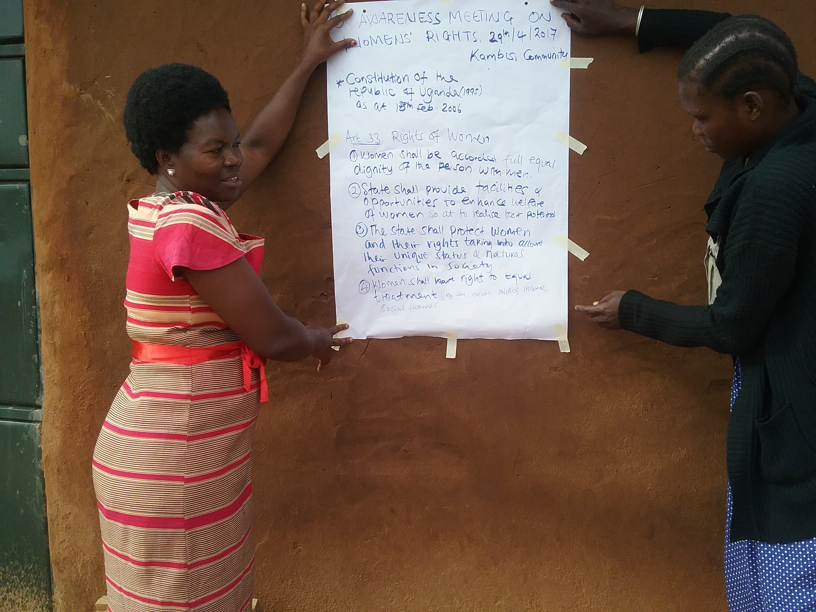 Overall, the changes that occurred in this community after awareness and training on women’s rights made women feel important to their community in terms of what they contribute at family, village, sub county, district and national level. A sense of equality and equity among males and females was created thus bringing harmony and peace in the community.